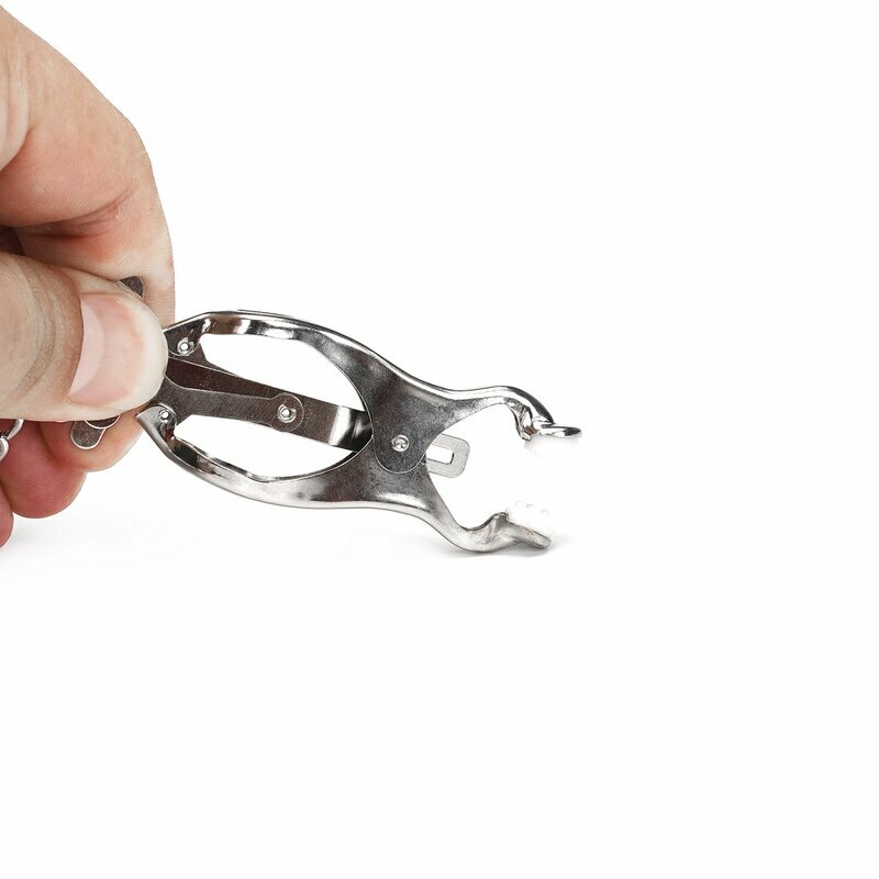 Diese japanischen Klammern haben kleinere Kontaktpunkte mit Gummi, was für einen festen Halt sorgt. Die verbundene Kette verfügt über zwei federbelastete Klammern mit Gummispitzen für zusätzlichen Komfort. Je stärker die Klammern gezogen werden, desto fester drücken sie. Ein großartiges Spielzeug für sensationelle Bondage-Spiele.