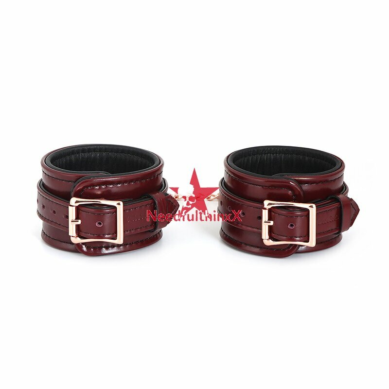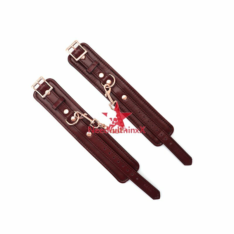 - Luxus-Fußfesseln aus hochwertigem, weinrotem Echtleder