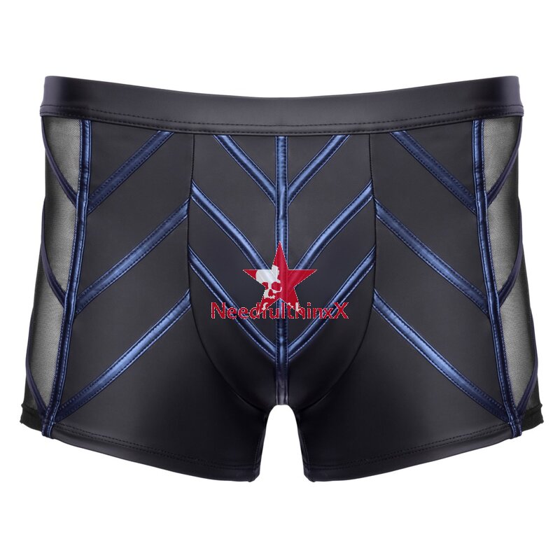 Betonende Pants von NEK im coolen schwarzen Mattlook. Vorne und seitlich mit aufgesetzten, rasanten Streifen im blauen Metallic-Mattlook. Jeweils seitlich zusätzlich ein schwarz-transparenter Netz-Einsatz. Mit bezogenem Bundgummi sowie rundum weich und elastisch für besten Tragekomfort.