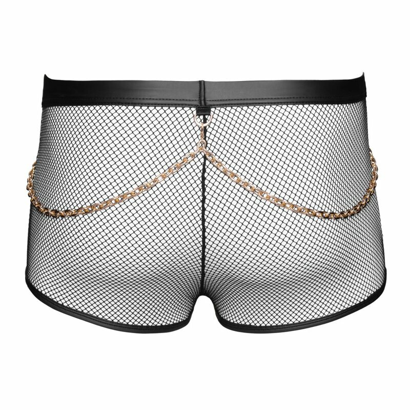 Betonende schwarze Pants von Svenjoyment aus zeigefreudigem Netzmaterial im Mix mit angesagtem Wetlook. Mit Reißverschluss im blickdichten Beutel. Rundum elastisch und weich anschmiegsam für hohen Tragekomfort. Dekorative goldfarbene Ringe jeweils vorne seitlich und hinten am Bund. Die beiden goldfarbenen Karabinerketten sind abnehmbar.