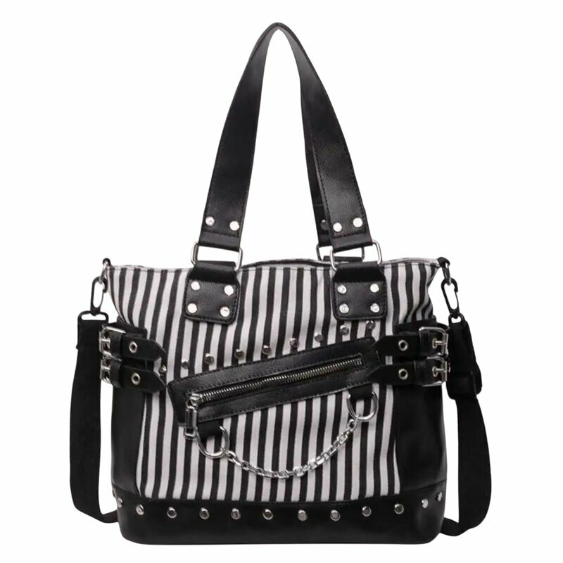 Tasche - Nieten und Kette - schwarz/weiß gestreift Kann nur direkt im Laden erworben werden!!
